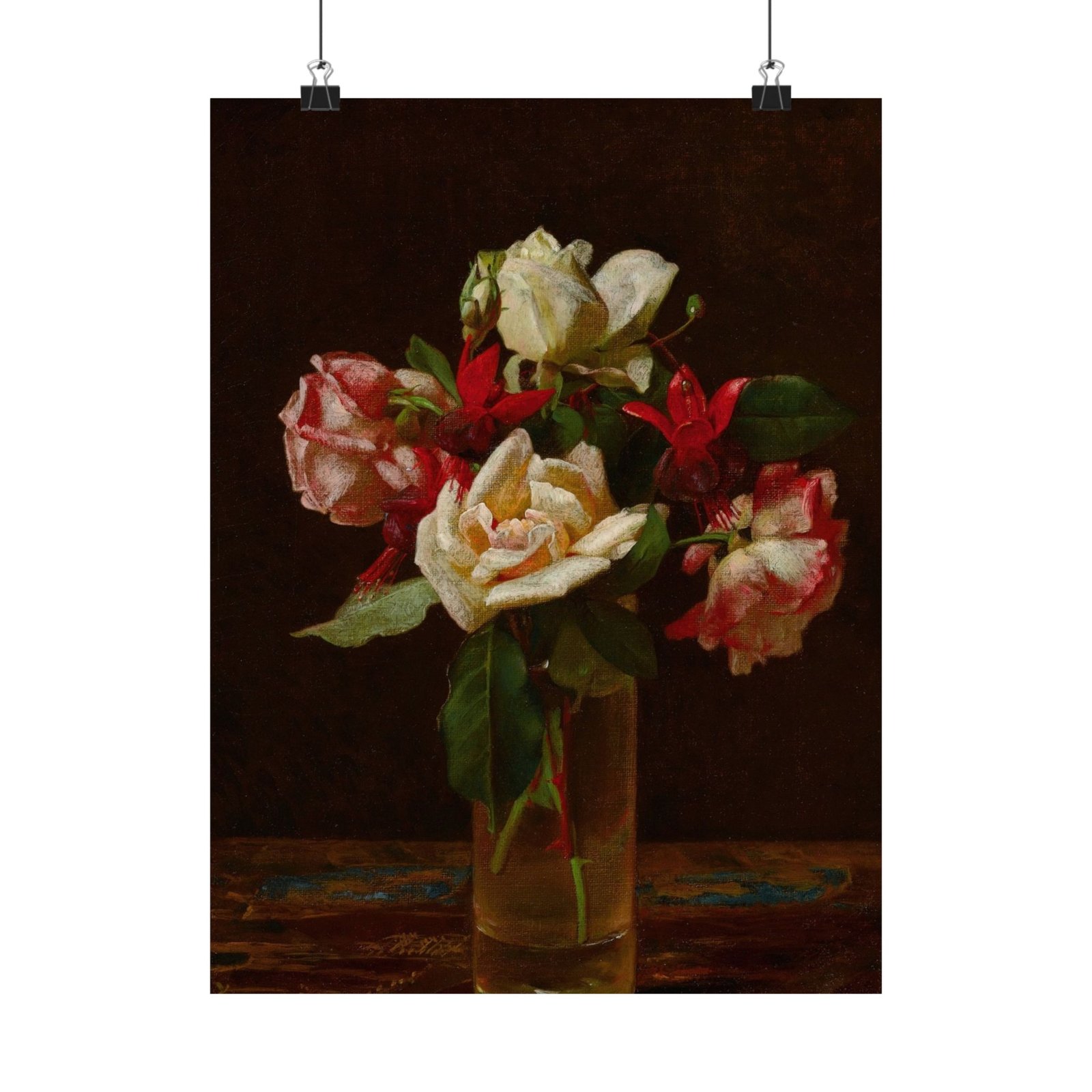 Натюрморт с розами и фуксией , обрамленный принт