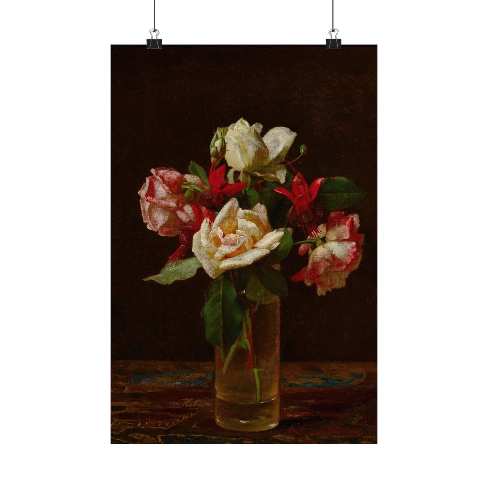 Натюрморт с розами и фуксией, постер